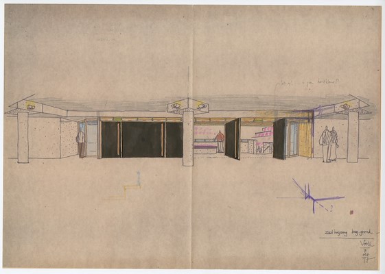 Schets openslaande deuren naar de Grote Zaal van MC Vredenburg