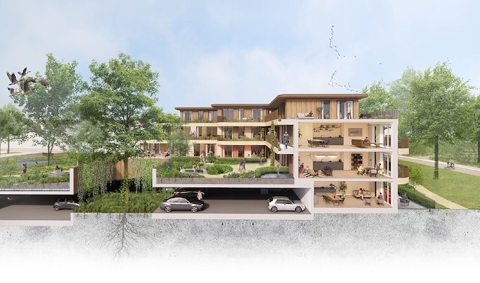 KOW en LAP ontwerpen gebouw met buitenruimte 'duurzaam in de breedte'