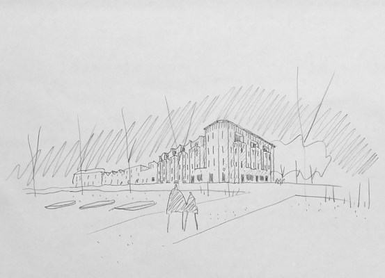 Bijzondere aandacht is uitgegaan naar de detaillering van de drempelovergangen tussen de straat en de gevel, zoals de binnenplooi van de woningentrees, de poortdoorgang naar het binnenhof, de getrapte loggia's aan de boezemzijde en de publieke vensterbanken aan het buitenterras van het restaurant.