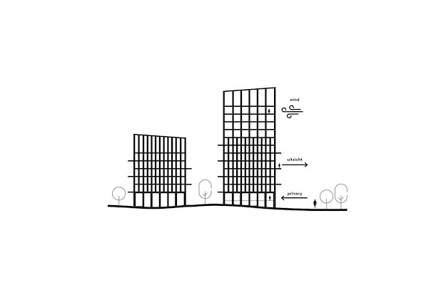 In plaats van voort te borduren op de bestaande strokenbouw, stelden de bureaus twee slanke torens voor
