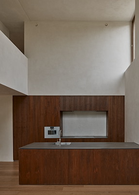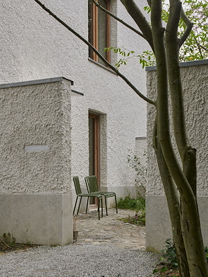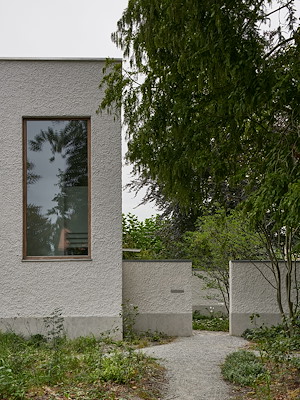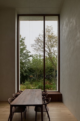Bij aankomst is het niet meteen evident dat het hier een woning betreft die tot passiefhuis is omgevormd, zegt Maarten van Kesteren architecten. Het is een ingetogen gebouw met grote gevelopeningen. De meeste openingen hebben diepe nissen, voor een deel door het dikke pakket aan buitenisolatie en voor een ander deel om direct binnenvallend zonlicht in de zomer te voorkomen.