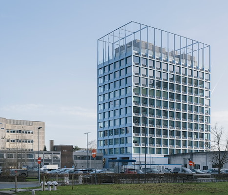 Het gebouw moest snel kunnen worden gerealiseerd, maar ook beeldbepalend worden voor het UZ-terrein. Om snel te bouwen, is alleen de dragende kern in het werk gestort. De rest van het gebouw bestaat uit prefab-onderdelen. Om het gebouw op te laten vallen, is het voorzien van een blauwe gevel met veel glas die helder afsteekt tegen de bestaande betonnen gebouwen op het terrein.