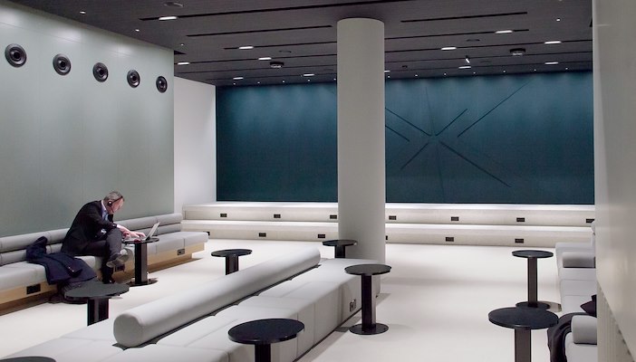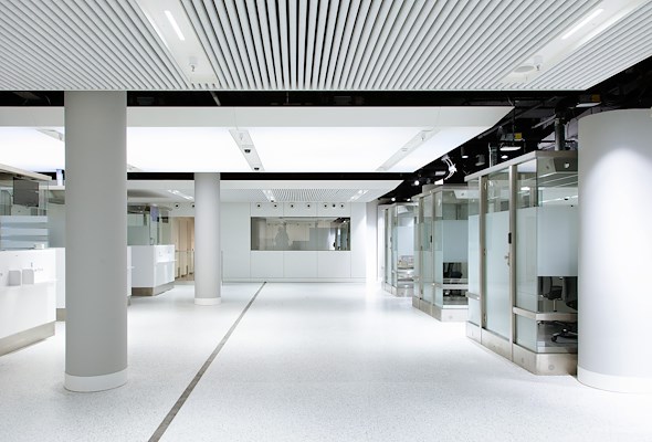 Het plafond bestaat uit vijfduizend individueel aanstuurbare LED-armaturen (DALI-verlichting), waarmee verschillende lichtscenario’s zijn gecreëerd.