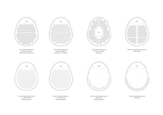 Het ontwerp richt het multifunctionele gebouw naar alle zijden, met ruime entreegebieden en de flexibiliteit om een breed scala aan binnen- en buitenevenementen te organiseren. De grote zaak, voorzien van geavanceerde technologie en met een capaciteit van 3.000 bezoekers, biedt mogelijkheden voor concerten, conferenties, internationale congressen, bedrijfsevenementen, maar ook exposities en stadsmarkten, aldus de architecten.