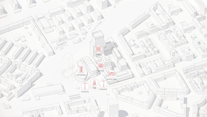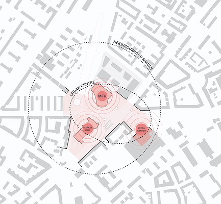 , verandert een in verval geraakte wijk in een stedelijke bestemming met een vernieuwd cultureel centrum, geschikt voor 3.000 personen, meerdere kantoor- en woongebouwen en een netwerk van openbare ruimten.