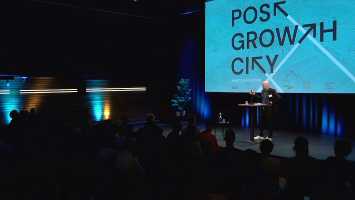 ) bracht in dat een Post-Growth City ook vraagt om ondernemingen die vanuit post-groei denken en hun eigen businessmodel bevragen. Dat geldt ook voor ontwerpers en adviseurs. Het vraagt om een omwenteling in de ontwerpcultuur. Zowel Wouter Vanstiphout, Marco Broekman als Peter van Assche lieten zien dat het groeidenken stevig verankerd is in de 20