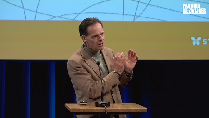 We moeten daarom toe naar selectieve groei, legde hij uit; groei die niet langer ten koste gaat van mensen, onze samenleving en onze planeet, maar juist mensen in hun kracht zet, onze samenleving eerlijker en solidairder maakt, en onze planeet versterkt. Dat betekent krimp voor alles dat een spoor van vernieling achterlaat, en groei voor alles dat regeneratief is en geluk brengt.