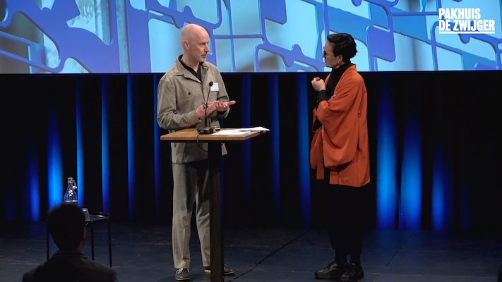Architect Peter van Assche van Bureau SLA (links) en moderator Saskia van Stein (rechts)