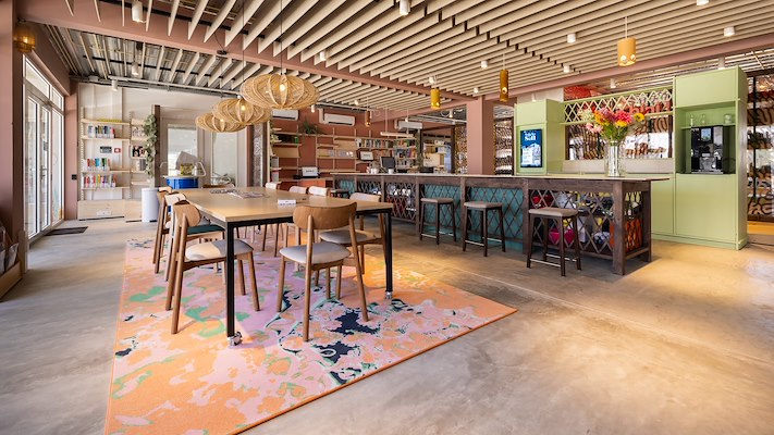 De begane grond is een multifunctionele ruimte met een ‘kids place’, een leeshoek voor zes- tot twaalfjarigen en een uitbreidbaar podium. De keuken, die ook als infobalie fungeert, heet bezoekers welkom met ‘Bon bini’ en biedt een aantrekkelijke plek om te genieten van koffie en lekkers. Op de verdieping bevinden zich een jongerenruimte met een ‘cave’ om te chillen, een MakerSpace, een multifunctionele vergaderruimte en kantoren.