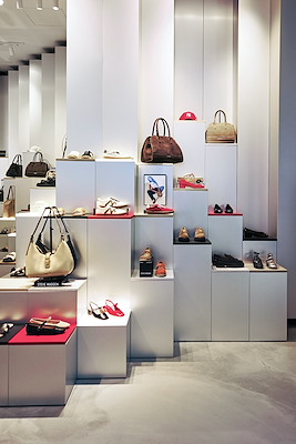 De displays zijn modulair en de opstelling kan worden aangepast aan elke collectie, of het nu gaat om seizoensgebonden producten, uitverkoop of standaardcollecties, vertelt concrete. Voor deze displays zijn verschillende materialen gebruikt, zoals leer, rubber, steen en hout. Deels weerspiegelen die materialen de texturen van Steve Maddens schoenen en accessoires.