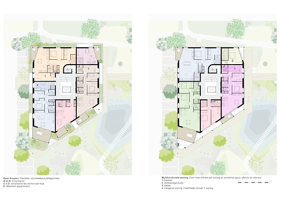 “De appartementengebouwen bevatten een grote variatie aan woningen, waarvan een aantal ook een tweede entree heeft, zodat een kantoor of atelier aan huis mogelijk is, of mantelzorg. Vanuit onze filosofie van het Open Bouwen richten we ons op het ontwerp van woningen die aanpasbaar zijn, maar ook flexibel in gebruik", stelt Marc Koehler, architect en oprichter van Marc Koehler Associates.