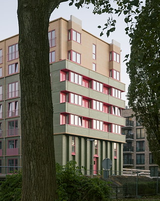 en bevat 108 sociale huurwoningen. Om het gebouw een ‘gezicht’ te geven aan de omliggende straten, heeft het bureau de kopgevels verbijzonderd.