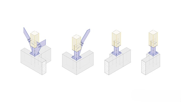 De basis van het systeem wordt gevormd door een heldere structuur van kolommen en balken, die wordt bekleed met prefab gevel- en dakelementen. Met het flexibele systeem kan elke locatie een op maat gemaakte opstelling krijgen, opgebouwd uit modules van 3,5 bij 3,5 meter.