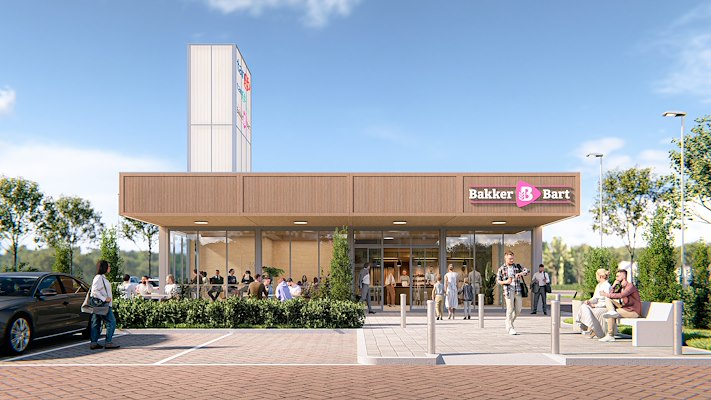 Een opvallend kenmerk van het ontwerp is de plafondhoogte, die aanzienlijk hoger is dan bij traditionele tankstations. De wanden en plafonds krijgen een afwerking in berkenhout met een subtiele vlamstructuur, wat bijdraagt aan de warme, natuurlijke uitstraling. In combinatie met de ruime indeling, het royale uitzicht en het gebruik van materialen met een warme uitstraling ontstaat een rustgevende en uitnodigende sfeer.