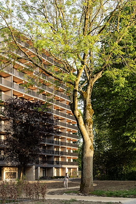 Het duurzame karakter van het woongebouw weerspiegelt zich in de omgeving. Een parkachtige tuin, ontworpen door LAP Landscape & Urban Design, omringt het gebouw. De westelijke georiënteerde balkons bieden de bewoners een ruim uitzicht op het omringende groen. Ook zijn op natuurinclusiviteit gerichte elementen in het ontwerp opgenomen, zoals vogels- en vleermuiskasten in de gevel, vertelt het architectenbureau.