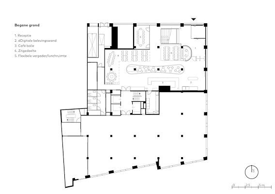 een interieur waarin de verschillende merken van het bedrijf worden weerspiegeld en waar het personeel en de bezoekers een gevarieerde en kleurrijke werkomgeving wordt geboden. Het interieur is volledig demontabel en verschillende ontwerpkeuzes zijn ingegeven door circulaire principes.