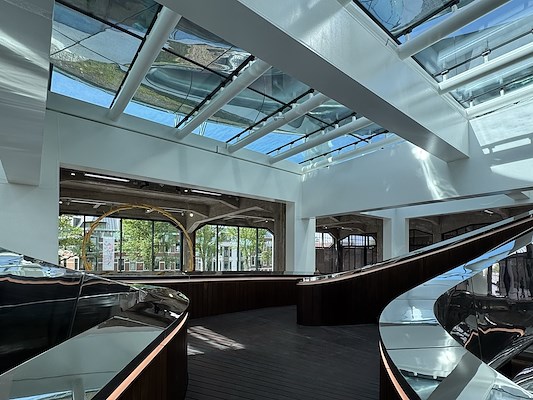 gerestaureerd. Vanuit het nieuwe atrium in het hart van het gebouw cirkelt een dubbele trap omhoog. Deze spectaculaire Tornado is ontworpen door