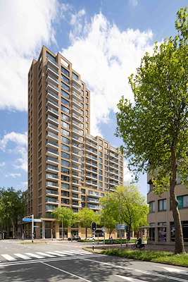 Een nieuw, zeventig meter hoog woongebouw markeert de entree tot het stadshart van Zoetermeer.
