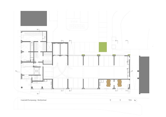 aan commerciële ruimte, geschikt voor een bestemming zoals een zorgwinkel, fysiopraktijk of zakelijke dienstverlening. Deze ruimten liggen langs beide straten. De gebouwentree voor de bewoners ligt op de hoek van de Europaweg en de Luxemburglaan. Verder omvat het gebouw 97 auto- en 320 fietsparkeerplekken.
