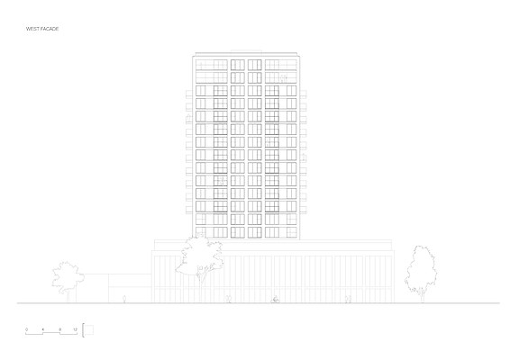 De compositie en proporties van de fabrieksgebouwen zijn bestudeerd om tot een passend grid te komen, gedefinieerd door een sterk melkkleurig kader en repetitieve invullingen in champagnekleurige metalen panelen. Door de plint een horizontaal karakter te geven, sluit Fresh aan bij de aangrenzende historische gebouwen. Naarmate de toren stijgt, verandert dit ritme subtiel in het middenstuk en de kroon.