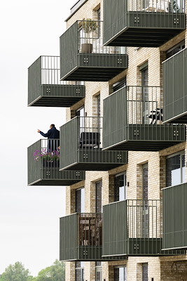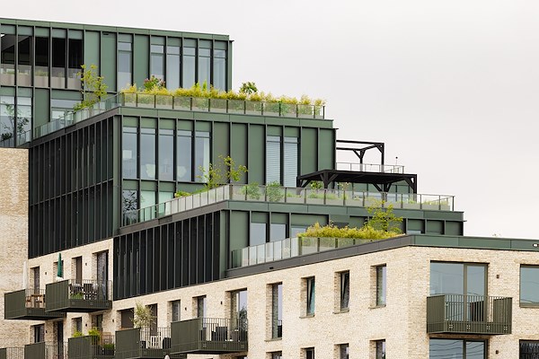 Het trapsgewijs oplopende gebouw bestaat uit baksteen, in combinatie met materialen zoals gepoedercoat staal en geanodiseerd aluminium. Grote openingen, diepe neggen en ritmiek in de gevels maken het gebouw leesbaar en ‘verbonden’ met zijn omgeving, laat Powerhouse Company weten. Dakterrassen en ruimte balkons maken dat de bewoners van de omgeving kunnen genieten.