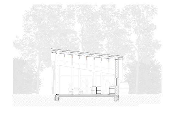 . De woning is volledig gebouwd in hout, waarbij het architectenbureau samen met de organisatie PWN een bijzonder experiment aanging: het gebruik van dennenhout uit de Noord-Hollandse duinen voor de constructie.