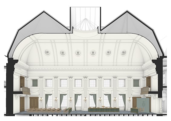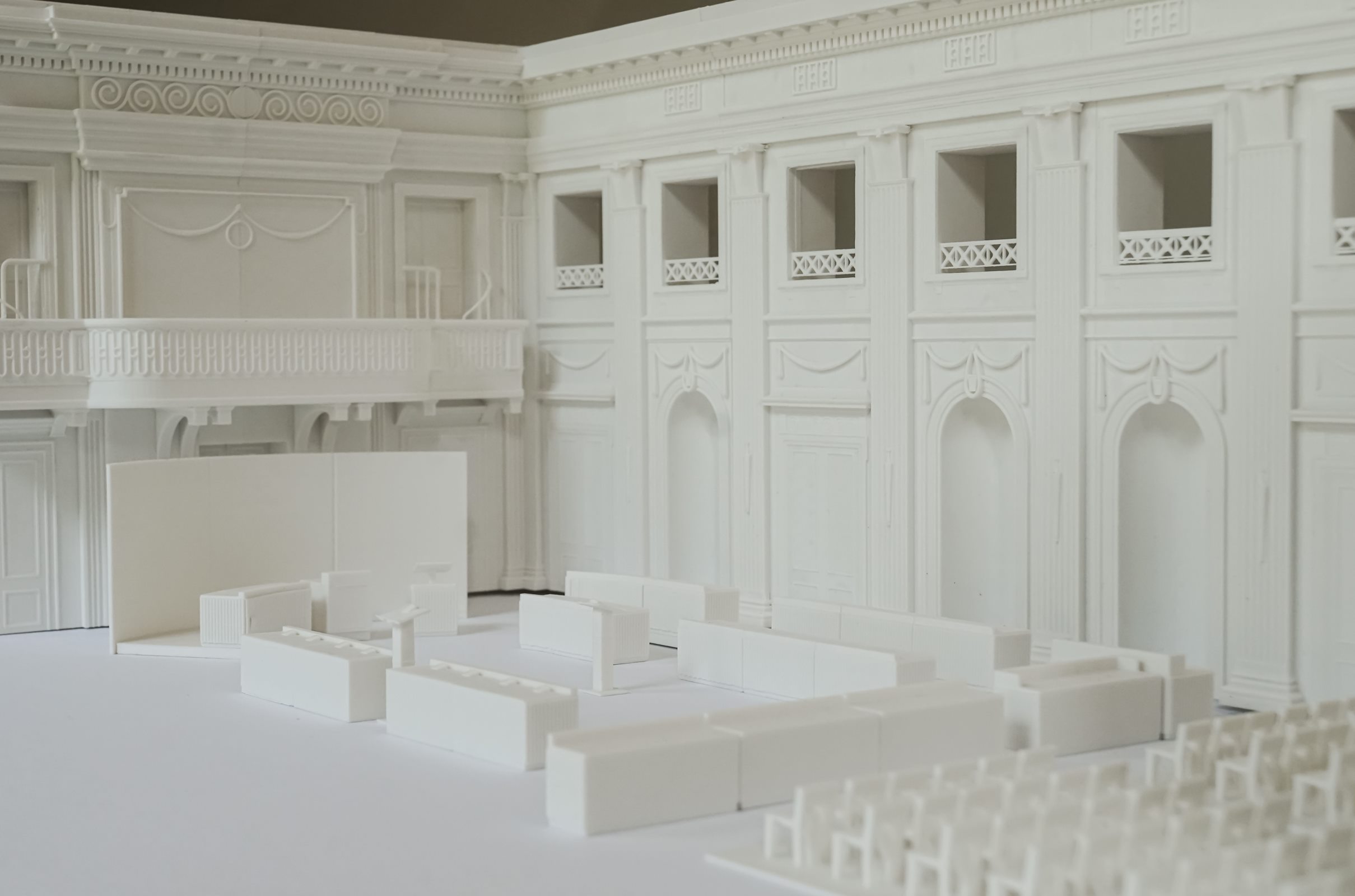 griffies. Het was direct na de transformatie tot plenaire zaal al passen en meten.