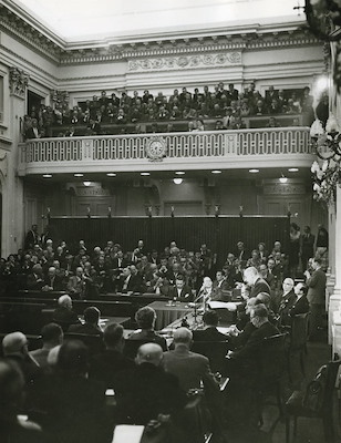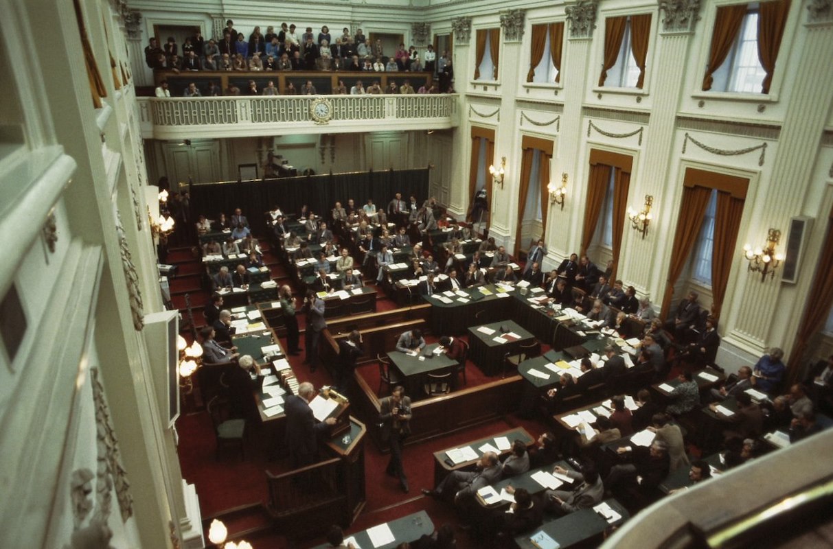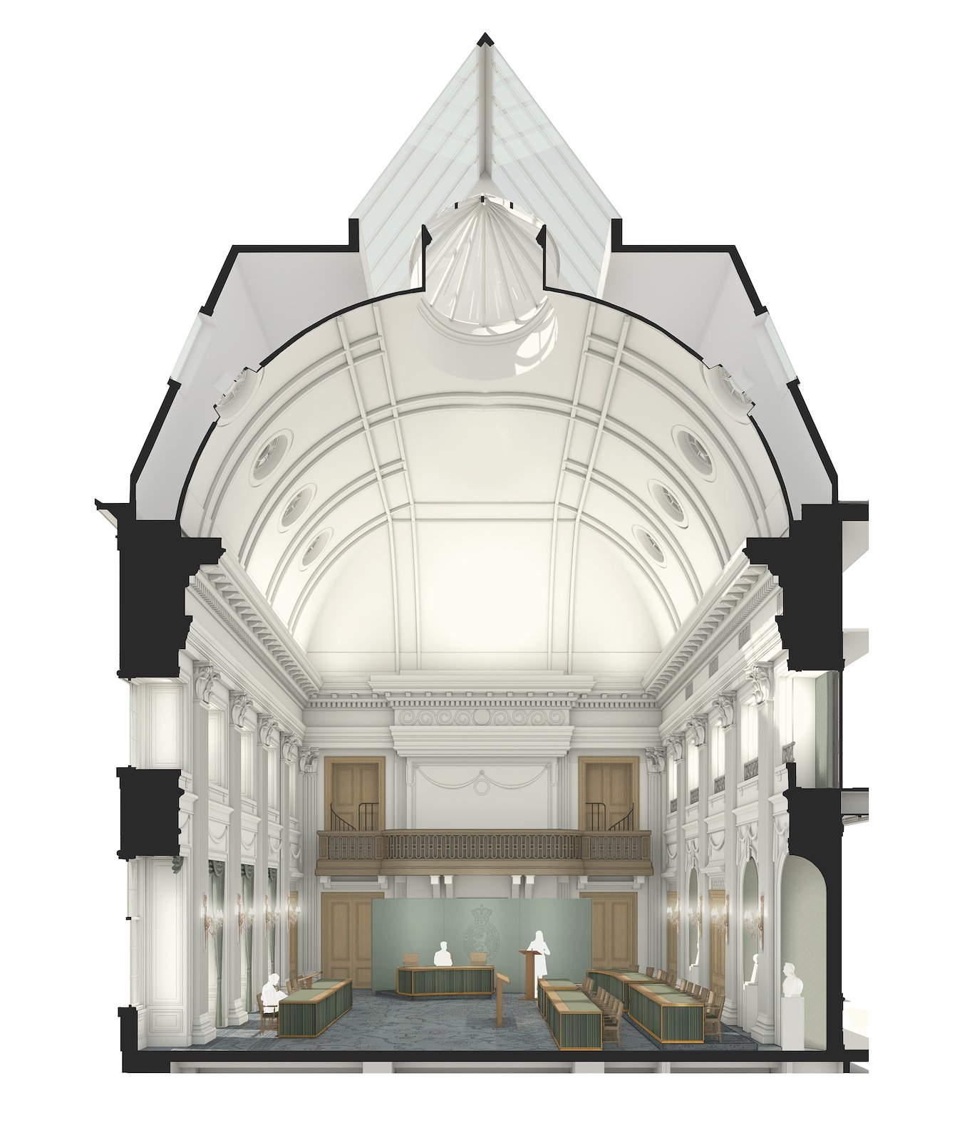 Kamer naar de nieuwe plenaire zaal naar ontwerp van Pi de Bruijn verhuisde.
