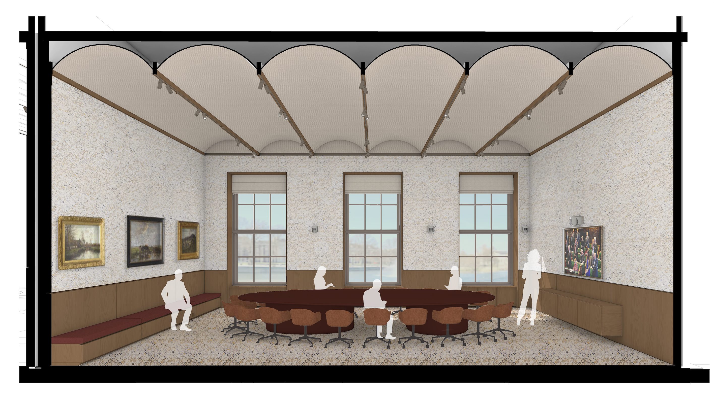 Deze wijzigingen hadden uiteindelijk zoveel impact op het meubilair in het hart van de zaal, dat ervoor gekozen is om dat dan maar helemaal te vernieuwen. “Je kunt het huidige meubilair niet namaken”, zegt Janneke daarover. “Maar je kunt het nieuwe meubilair wel eenzelfde verfijning geven als het bestaande.”