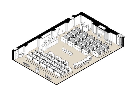 voor elektra en data opgenomen. Voorin de zaal worden twee bankjes aangepast zodat deze ook gebruikt kunnen worden door mensen in een rolstoel.