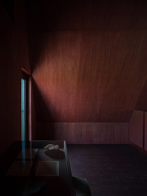 Vloeren zijn vervaardigd uit verzaagd balkhout, dat afkomstig is van lokale sloop. De schouw is bekleed met marmerresten, geschonken door een beeldhouwer uit een nabijgelegen dorp. Een duurzaam lagetemperatuursysteem is esthetisch geïntegreerd in zowel de wanden als het vaste meubilair van het houten interieur.