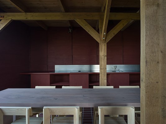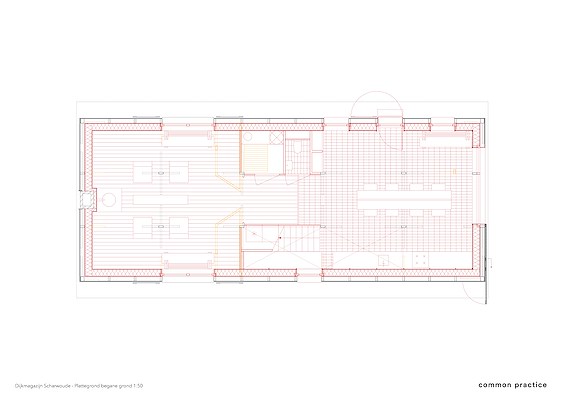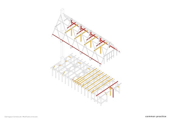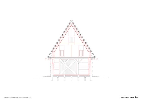 Architectenbureau Common Practice heeft gericht ingezet op behoud en versterking van bestaande elementen en sferen. De karakteristieke donkere gevel is geconserveerd en nieuwe ramen zijn achter de oorspronkelijke luiken geplaatst, vertelt het bureau. De oorspronkelijke houten structuur is zorgvuldig geïntegreerd in het nieuwe ontwerp. In de nieuwe houten binnenschil, gevuld met vlasisolatie, heeft Common Practice oorspronkelijke architectonische details ‘geciteerd’.