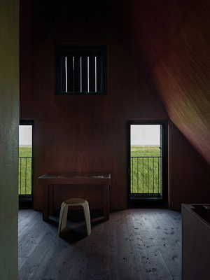 “Deze aanpak beperkt de milieu-impact van transformatie en houdt tegelijk de historische lagen van het gebouw zichtbaar en actief”, verklaart Common Practice. “Het karakteristieke donkere object bleef behouden als kleine herinnering aan de fragiele relatie tussen het Hollandse landschap en het water.” De verblijfsplek biedt een oppervlakte van 150m