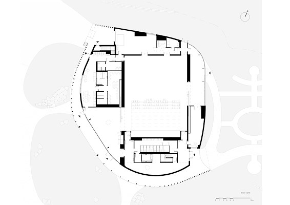 “Het gebouw is een dans op zich, constant in beweging en veranderend, net als de kunst die het huisvest”, gaat het bureau verder. “De flexibele theaterruimte ademt ook dat ethos: die is in te richten voor een breed scala aan voorstellingen, van intieme bijeenkomsten tot uitgebreide digitale presentaties.”