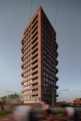 ontworpen diamantvormige toren biedt plek aan 93 woningen, variërend van ‘betaalbare’ appartementen op de onderste verdiepingen tot open penthouses in de top van het gebouw. Afhankelijk van het perspectief biedt de toren telkens een andere uitstraling.