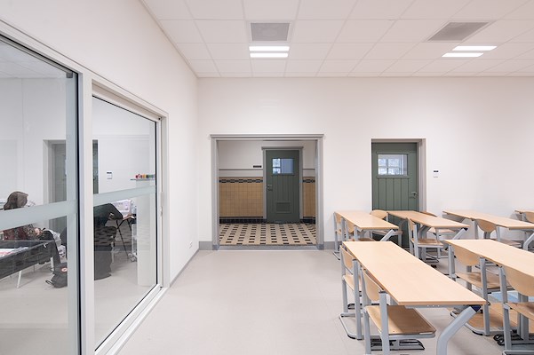 De monumentale bouwdelen zijn, met behoud van bestaande kwaliteiten en uitstraling, grondig gerenoveerd, inclusief herstel van originele kleuren van deuren en kozijnen. Om de bestaande school geschikt te maken voor hedendaags onderwijs zijn lokalen, met preservatie van de originele kozijnindelingen, vergroot door scheidingswanden te verplaatsen. Dat is een flexibiliteit die in 1923 al bleek ontworpen, meldt bdg architecten.