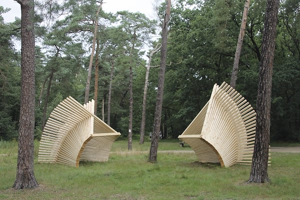 Voor de folly Wervel hebben Jitse van Keimpema en Veerle van der Werf gebruik gemaakt van de techniek shilling, waarbij houten dakpannen worden gemaakt door het hout te splijten in plaats van te zagen. Hierdoor worden ze waterdicht. De als een onregelmatig lopend dak vormgegeven folly is feitelijk een zeven meter lange tunnel die begint met een hoogte van 3.5 meter en eindigt op 1,14 meter. De binnenkant is rood, wat de bezoeker volgens de makers dwingt zich kleiner te maken.