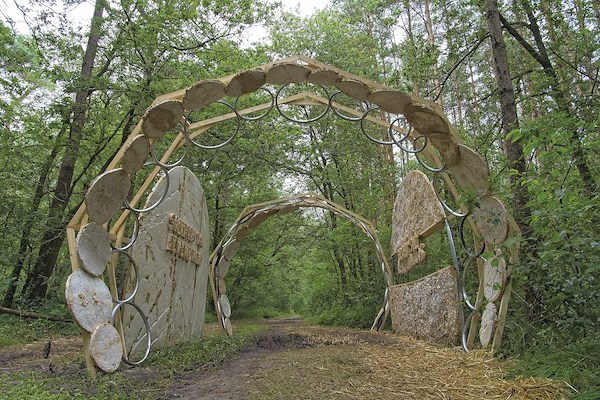 De folly Ontheemd door Carol Nobbe is geen bouwwerk om naar te kijken, maar om doorheen te bewegen. De installatie bestaat uit een reeks poorten die steeds smaller worden, steeds beklemmender. “Wat begint als een open structuur, verandert langzaam in een raster van beperking. Het gaas waarmee de constructie is opgebouwd, roept associaties op met opsluiting, controle, het niet kunnen ontsnappen. Elke doorgang wordt nauwer, de ruimte dringt zich op, en het lichaam moet zich voegen naar de vernauwing van het pad. Aan het eind wacht geen uitweg, slechts een gefilterd zicht op een wereld die dichtbij lijkt, maar onbereikbaar blijft”, aldus de maker.
