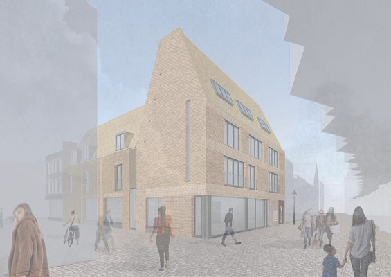 verantwoordelijk voor het ontwerp van De Elisabeth, zoals het project is gedoopt. De in lichte baksteen uitgevoerde nieuwbouw onderscheidt zich duidelijk van het gerestaureerde hoekpand en de andere omliggende bebouwing. Tegelijk volgt de architectuur pandsgewijze opzet die al aanwezig was in het oude pand en die ook de omgeving kenmerkt.