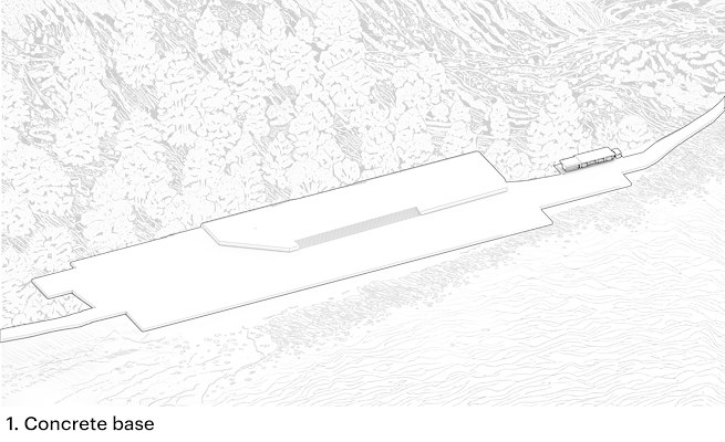 Er is een strategie voor de beplanting van het bebouwde gebied, passend binnen de lokale vegetatie. De dichte begroeiing aan de kant van het bos loopt geleidelijk over naar schaarsere, zouttolerante plantensoorten bij de zee. Ook de gebouwen zelf zullen na verloop van tijd worden overgenomen door mos en kleine planten die zich in het beton wortelen.