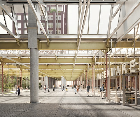 In het plan van Caruso St. John, Ard de Vries & Donna van Milligen Bielke (ADVMB) en SteenhuisMeurs zijn de kwaliteiten van het erfgoed het voornaamste uitganspunt. Grote open ruimtes worden behouden en waar nodig hersteld. De rolwagenbaan wordt opnieuw zichtbaar en vormt de ruggengraat van het plan. Nieuwe toevoegingen zijn terughoudend en reversibel zodat het karakter van de hallen behouden blijft. Ruimtelijkheid, daglicht en constructieve elegantie blijven zichtbaar en maken nieuwe functies en gebruik mogelijk.