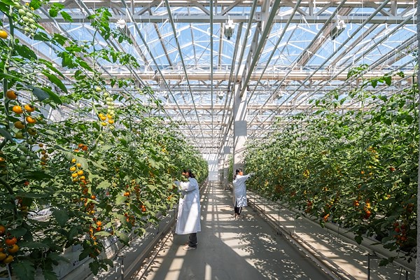 groot. Verdeeld over de verdiepingen zijn verschillende innovatieve teeltmethoden te vinden. Een educatieve route door het gebouw begeleidt bezoekers door de geautomatiseerde verticale teelt van bladgroente en fruit onder LED-verlichting, evenals een dakkas waar vruchtgroente en fruitbomen onder daglicht worden geteeld.