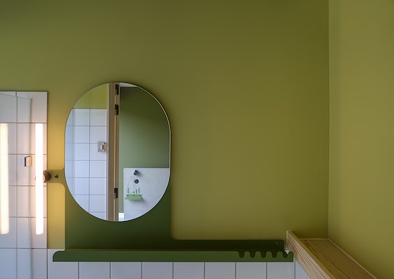 In de slaap- en badkamers is de lijn van maatwerken doorgevoerd in de bedhoofden met verplaatsbare nachtkastjes, de schrijf-/koffertafels en de multifunctionele