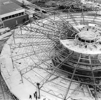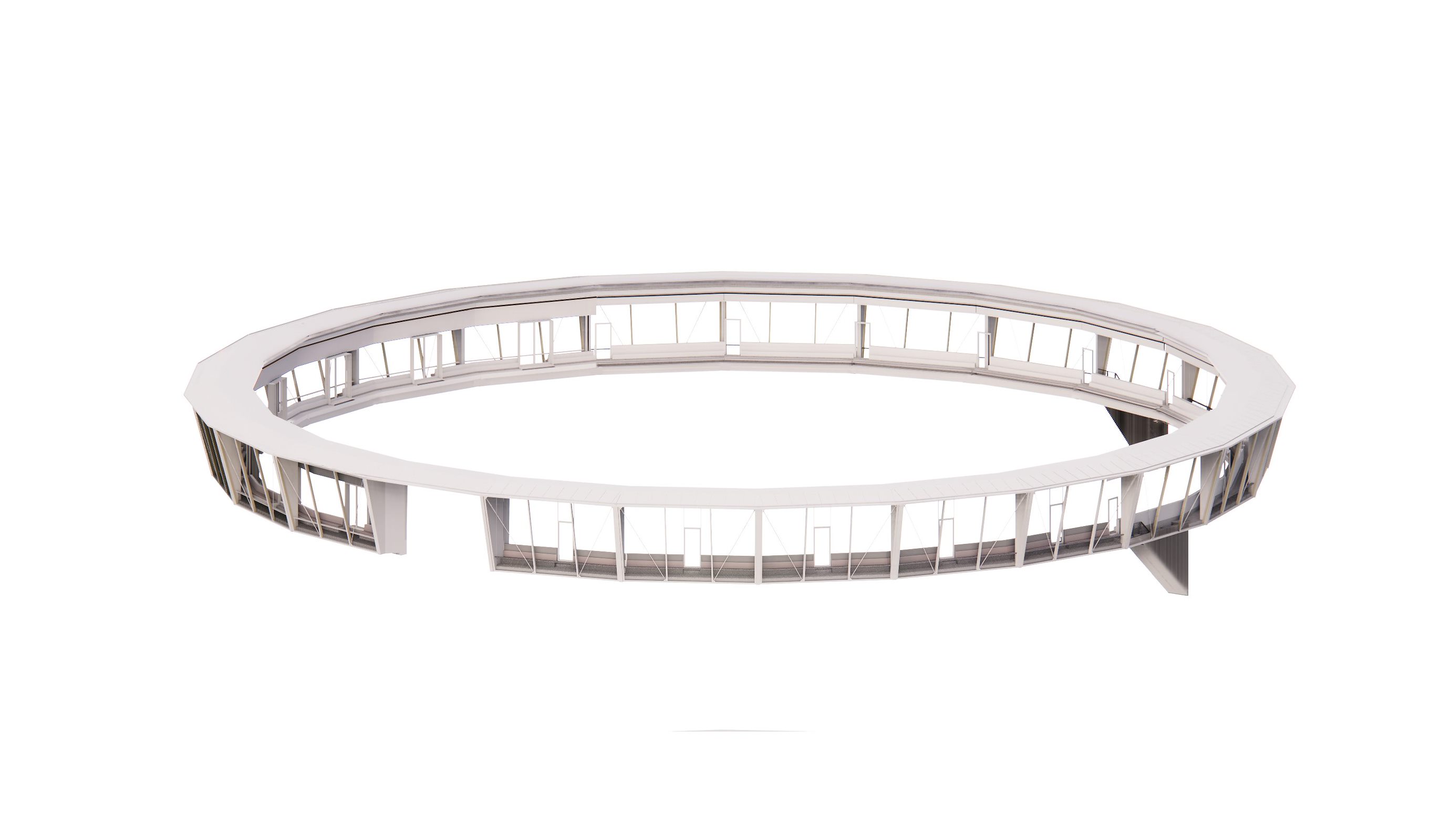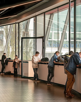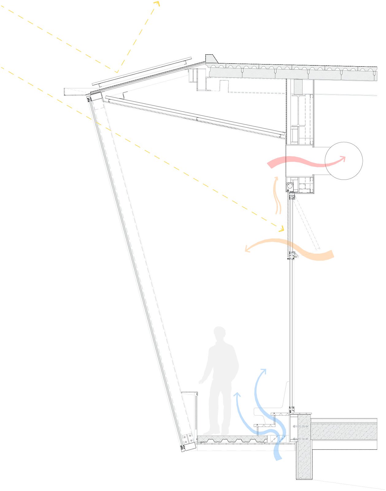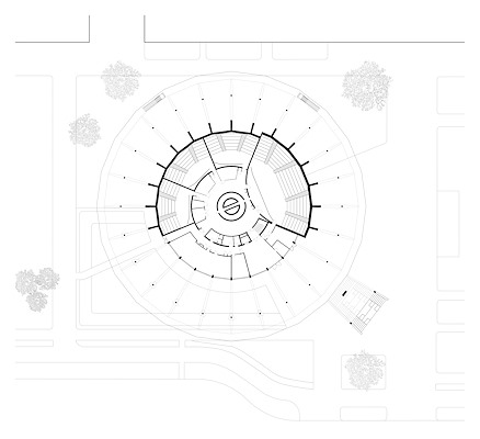 Een nieuwe trap, tevens entree, verbindt nu het maaiveld met het eerste niveau. Een bijgebouw, dat oorspronkelijke als entree fungeerde, is gesloopt. De trap leidt naar een panoramarestaurant op de eerste verdieping waar werk- en studieplekken zijn gemaakt. Dit niveau kan tevens dienst doen als ruimte voor presentaties, congressen en uitreikingen. De trap zelf in eveneens een verblijf- en ontmoetingsplek en vormt een tribune voor het campusplein.