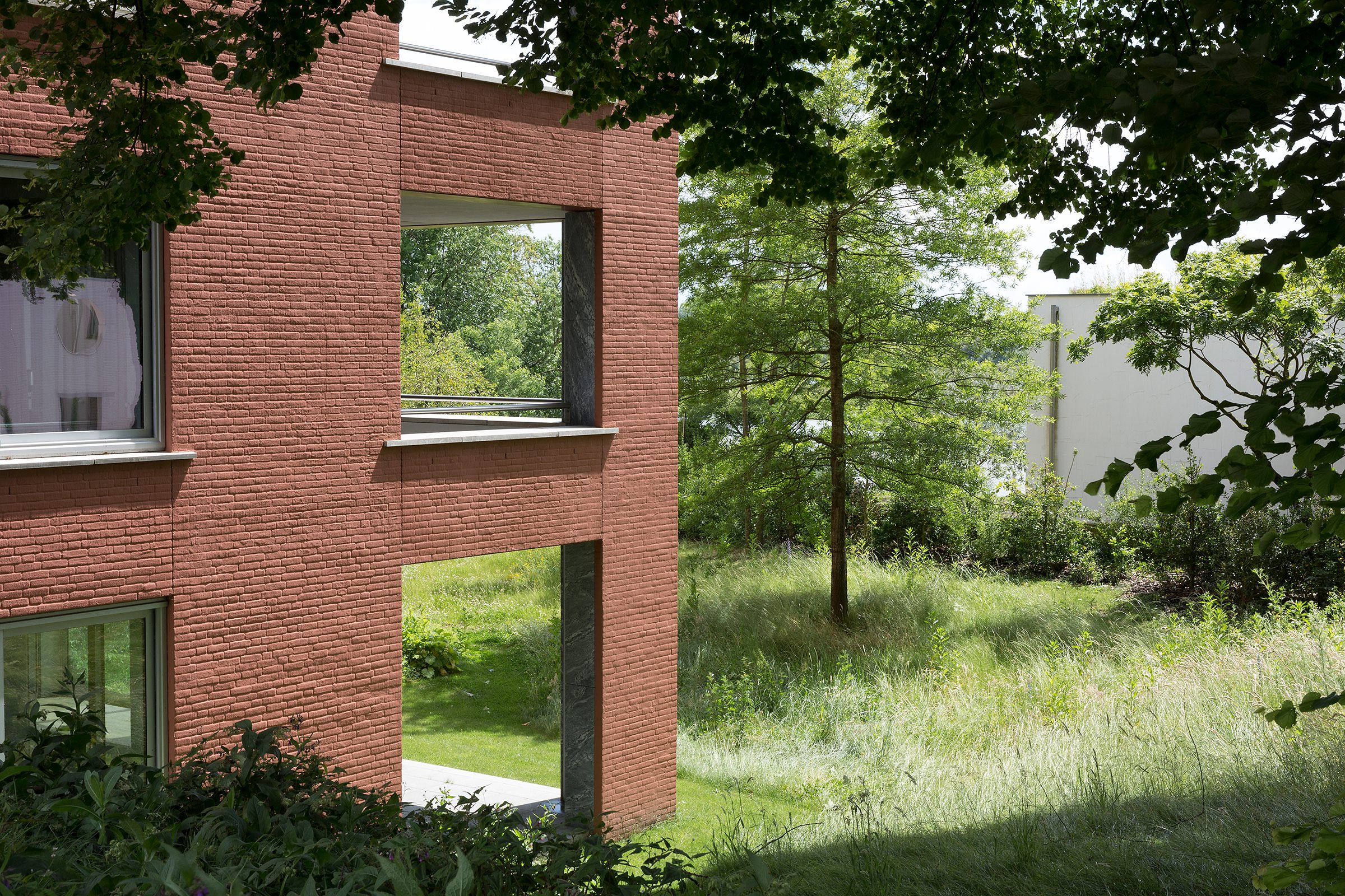 “De uitdaging bij Landgoed Klingelbeek in Arnhem was om in het aanwezige parklandschap enkele woongebouwen toe te voegen, zonder dat landschap op te delen in aparte percelen; om het landschap dus als één geheel beleefbaar te houden, zodat bewoners en bezoekers er vrij kunnen rondlopen", legt architect Christopher Dyvik uit. “Daarom hebben we de verschillende woningtypen gegroepeerd in vrij elementaire volumes, waarbij de buitenruimtes niet uitsteken maar opgenomen zijn in die volumes, in de vorm van patio’s en loggia’s. De grens tussen bebouwing en natuur, tussen privé en openbaar, is scherp getrokken. Dat werkt daar heel goed.”