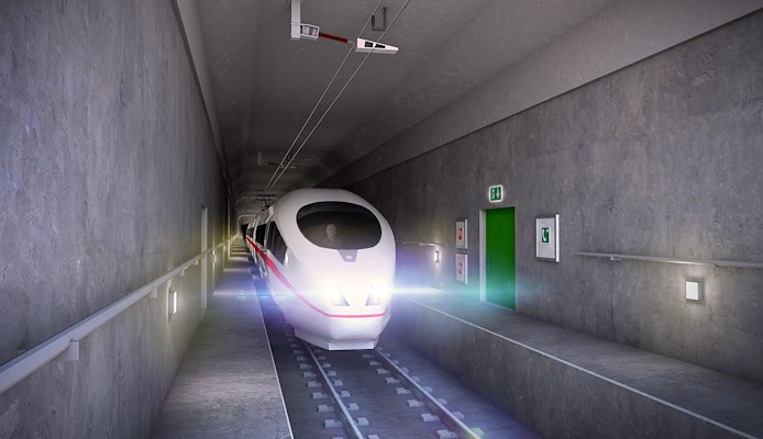 moet de langste weg- en spoortunnel ter wereld worden, maar de werkzaamheden lopen nu anderhalf jaar achter op schema. Het voltooien van een speciaal schip dat is ontworpen om tunnelonderdelen in zee te laten zakken, loopt zo ver achter dat het volgens de projectontwikkelaar moeilijk zal zijn om de tunnel in 2029 te kunnen openen. Het schip moet ook nog uitgebreid worden getest en goedkeuringen krijgen.