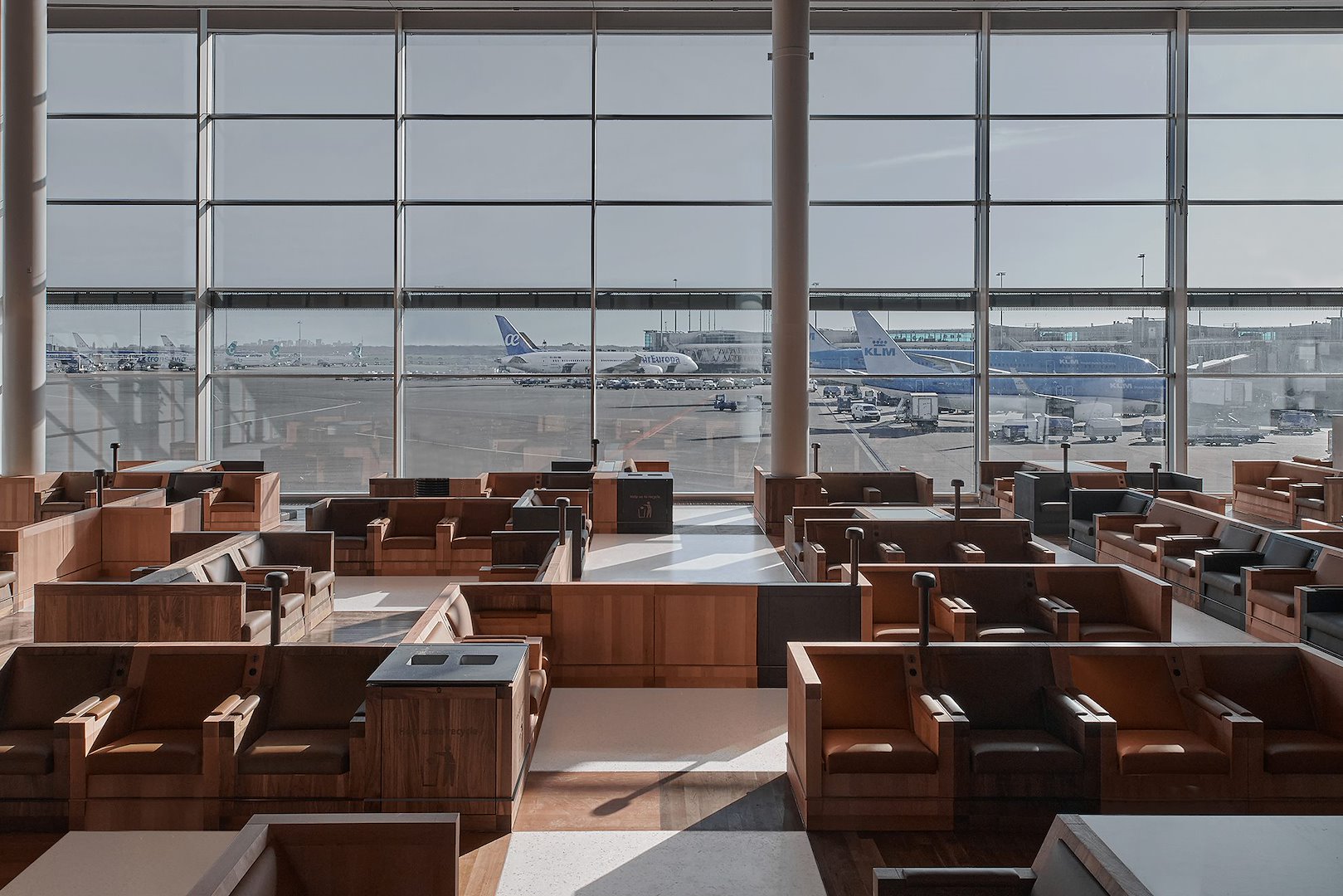 Ook in de publieke ruimte zoekt Beyond Space naar onverwachte oplossingen. In het ontwerp voor Lounge 2 op Schiphol werden de stoelen niet simpelweg in rijen geplaatst, maar georganiseerd tot een labyrintische ruimte die telkens wisselende combinaties van zitjes oplevert.