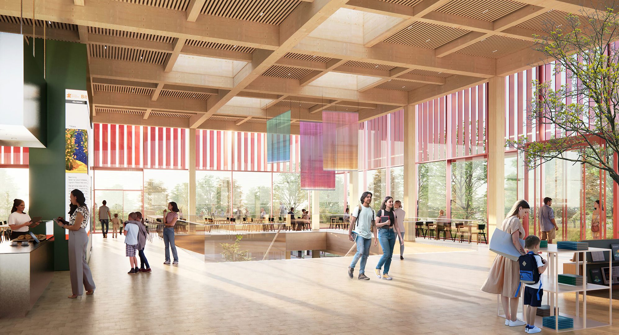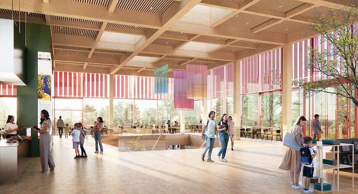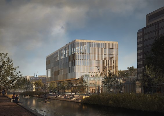 2-uitstoot van haar ontwerpen ontwerpt ze het liefst in hout en andere biobased materialen. Alleen de onderste twee lagen zijn uitgevoerd in beton. "In het geval van een overstroming, waarvan we hopen dat die nooit zal plaatsvinden, wil de gemeente die situatie vanuit dit gebouw kunnen coördineren."