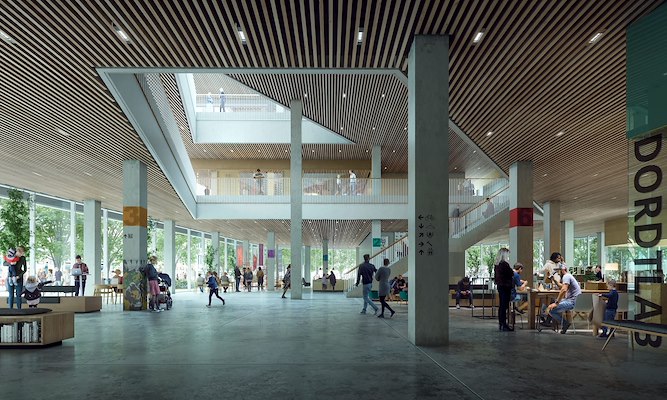 “Tegelijkertijd gaat het Dordthuis ook over de verbinding met de omliggende straten, hoe het gebouw de omgeving waarin het staat een impuls geeft, en over hoe het de oude binnenstad met de stationsomgeving verbindt...”