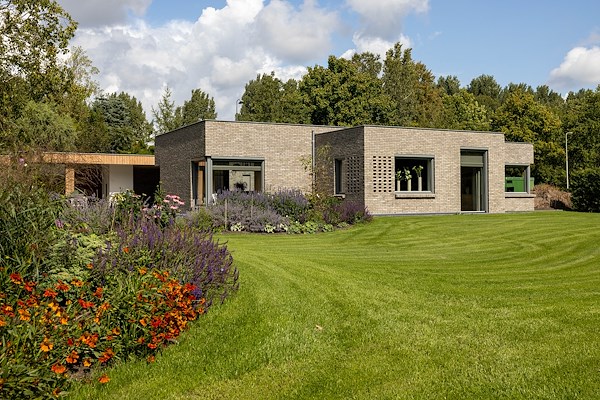 De weidsheid van de royale tuin omspoelt het huis en vormt een contrast de intimiteit en warmte van het interieur. De villa heeft een bruto vloeroppervlak van 240 m